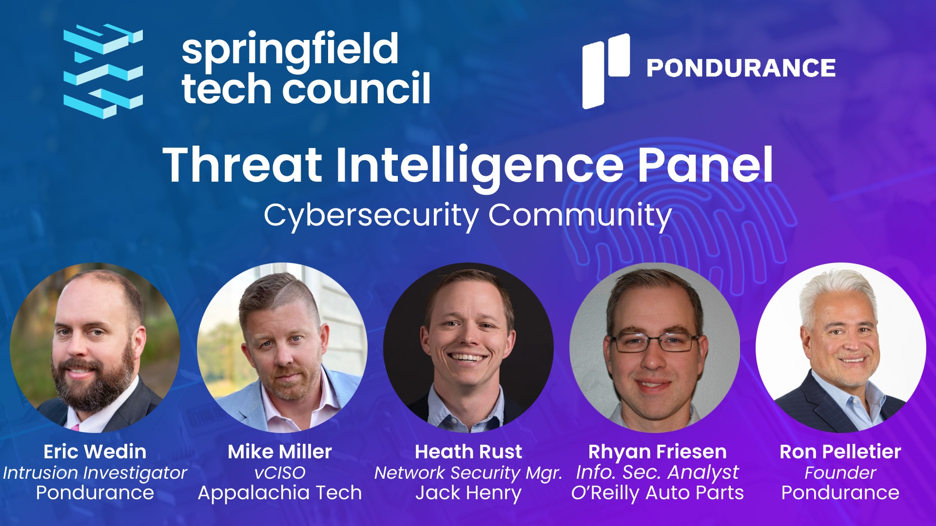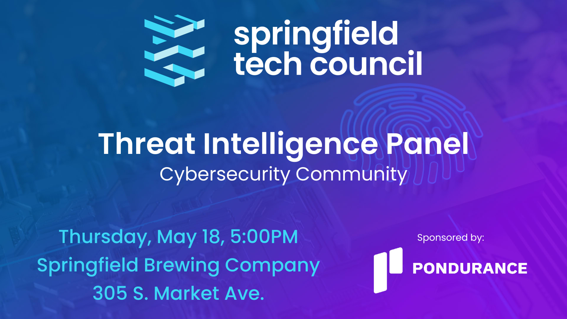 Our quarterly Cybersecurity Community, sponsored by Pondurance, returns Thursday, May 18th, 5PM, and Springfield Brewing Company. We have an excellent panel of local and national experts coming to discuss Threat Intelligence.